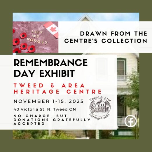 Tweed & Area Heritage Centre: Remembrance Day Exhibit November 1, 2025 - November 15, 2025