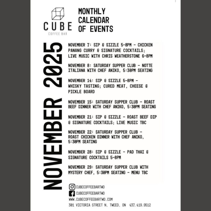 Did you know that Cube Coffee Bar TWD is hosting live music events? 6:00-8:00 PM. Please call them to confirm times! No cover charge – enjoy with great food and bevvies…Give the Cube a follow on Facebook or Instagram, get on their mailing list for more info!