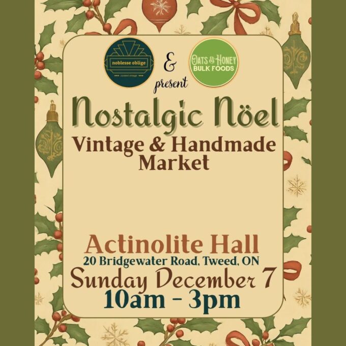 Noblesse Oblige Toronto and Oats & Honey Bulk Foods (Madoc) are teaming up and doing a thing in Actinolite on Sunday December 7th! They’re looking for makers of neat things and also – if you are a vintage seller they want to hear from you too! Find the application here: https://forms.gle/5xUwrfbYgcjUQVqz7. Should be an amazing market at the Actinolite Hall!