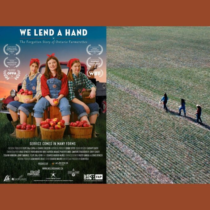 We Lend a Hand: The Forgotten Story of the Ontario Farmerettes is a 49-min documentary which reveals the true and forgotten story of the Ontario Farm Service Force. It put 40,000 volunteer teenage girls to work between 1941 and 1952, arriving from different parts of Ontario and Quebec to many locations in Southwestern Ontario. They were called The Farmerettes. Their job: to ensure critical food production during the most perilous period of modern history. With no prior farming experience, their hardships were tremendous. For long months, they worked under relentless weather conditions and schedules. Yet they single-handedly managed to produce hundreds of thousands of tons of food that were shipped off to the frontlines to feed starving European populations and even prisoners of war. Through reenactments and unique archival images, We Lend a Hand: The Forgotten Story of Ontario Farmerettes recounts the story of these magnificent young women, now in their late 90s, bringing back their most cherished memories while reminding us – perhaps for the last time – that service comes in many forms.