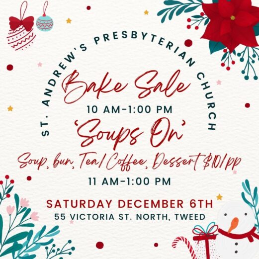 ‘Soups On’ and Bake Sale @ St. Andrew’s Presbyterian Church December 6, 2025