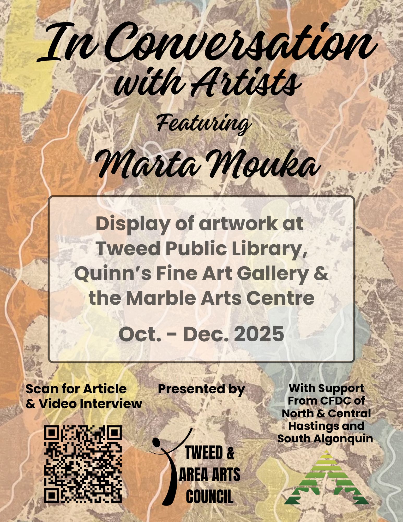 Our featured artist for October – December, 2025 is fibre artist artist Marta Mouka. A selection of Marta’s work will be on display at the Tweed Public Library, Quinn’s of Tweed Fine Art Gallery and in the atrium of the Marble Arts Centre.